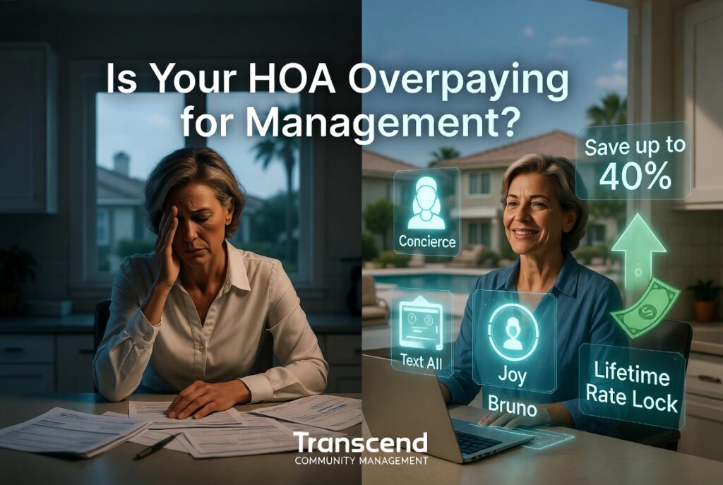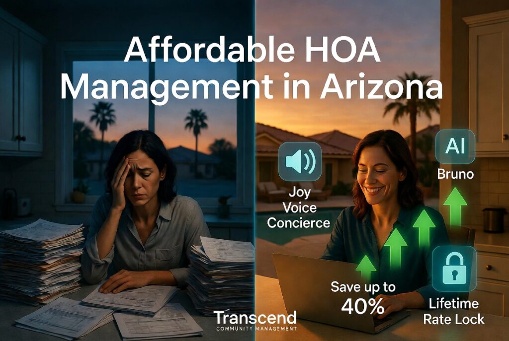Arizona HOA boards seeking affordable HOA management in Arizona are quietly making a powerful switch. They’re moving from traditional, high-cost management companies to a smarter, more affordable alternative that combines cutting-edge AI with genuine human care. Transcend Community Management’s AI-Powered, People-Driven approach is helping communities slash management expenses by up to 40% while dramatically improving…